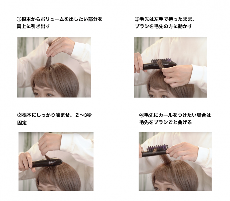 • ・根本に2〜3秒ブラシを当てるだけでボリュームが出る。