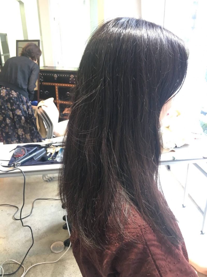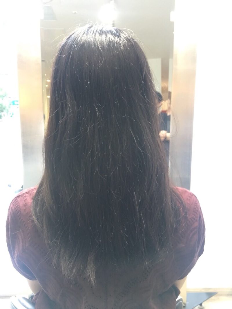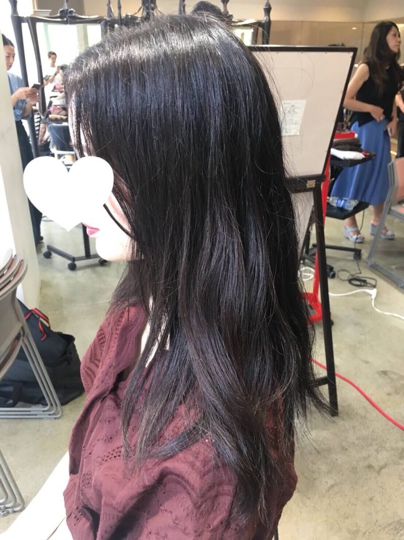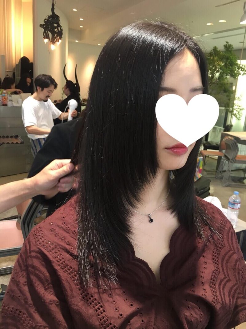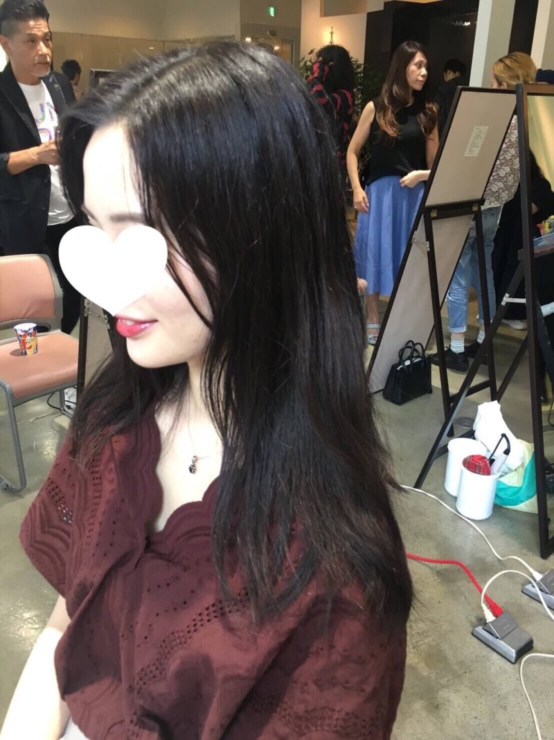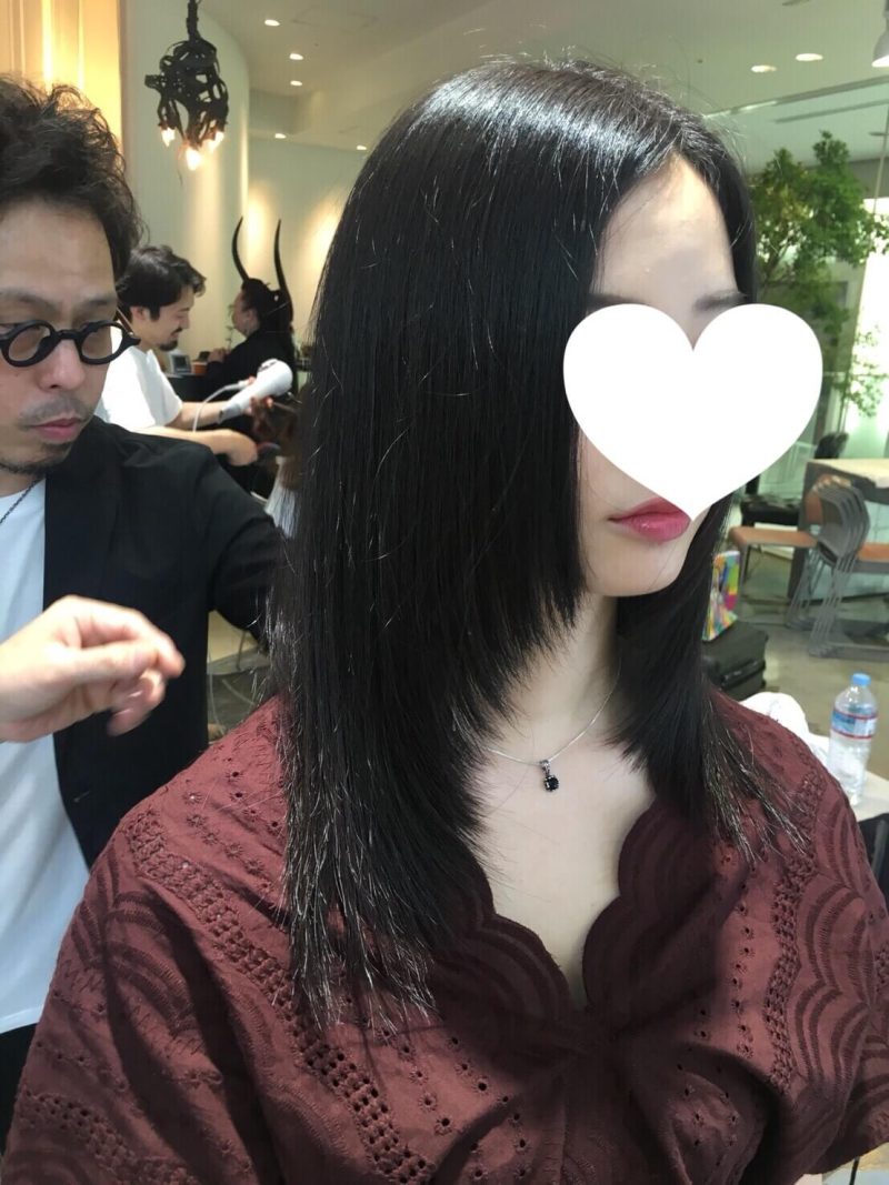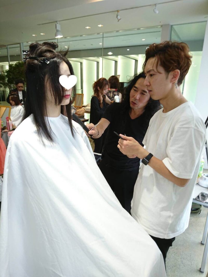 モデルさんをニューヨークドライカットしていきます。長さは変えず、髪に柔らかい動きが出るようにしました。綺麗なモデルさんをさらに綺麗に見せてくれるヘアスタイルを目指します。