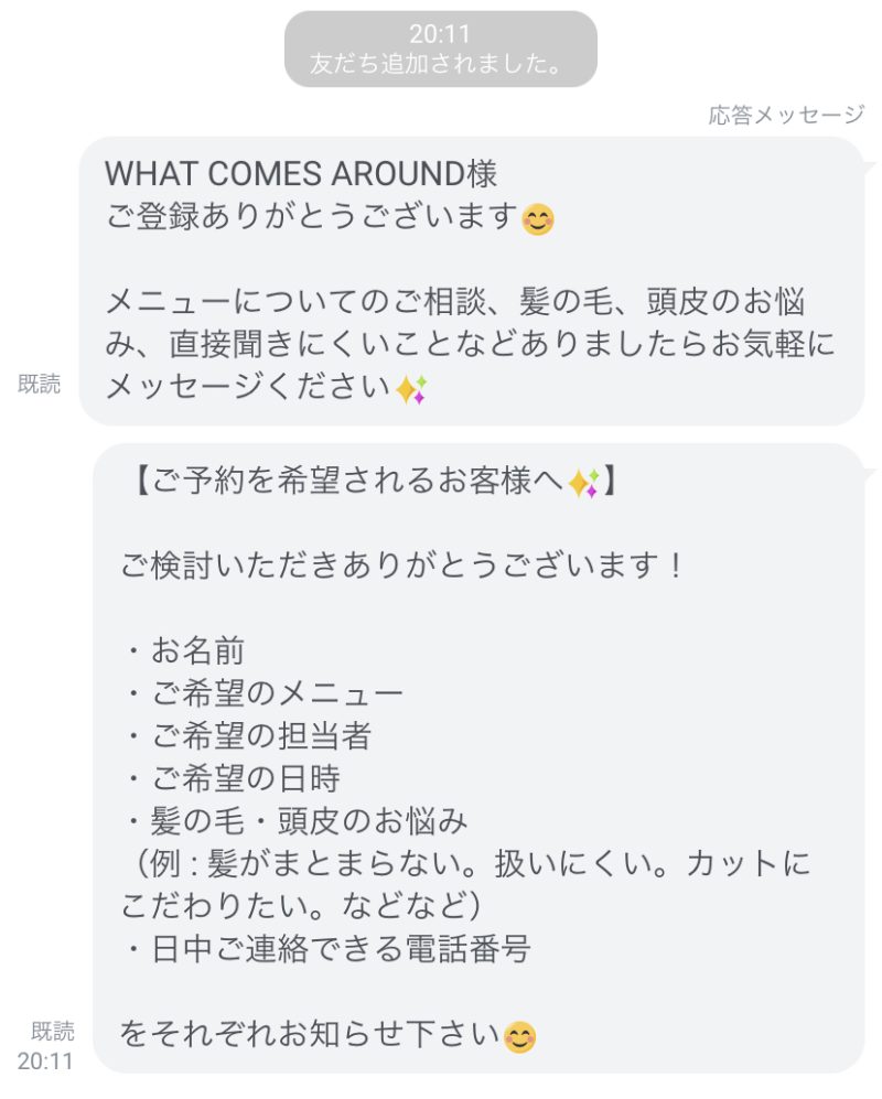 LINEアカウントを【友達追加】したのち、自動メッセージが届きますので、そちらに沿ってご返信ください。