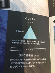 ラインナップはクリア、マグノリア、オリエンタルジャスミンに新しくミンティーオレンジ、シーソルトが加わり5種類ありますが、当店では使いやすくおすすめの下記の二種類を取り扱っております。